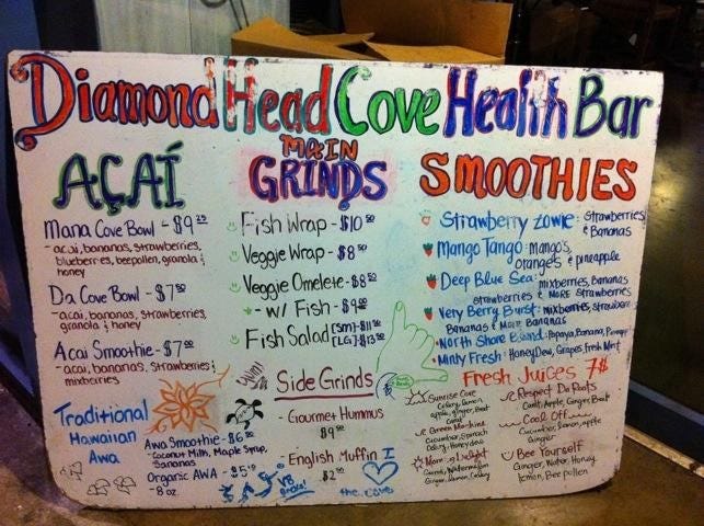 On my way to Portland this week I stopped for a few days in Oahu, Hawaii, to brush up on my surf skills. But while the surfing time was excellent, the highlight of the trip for me wasn't at the beach - it was at the Diamond Head Cove Health Bar.