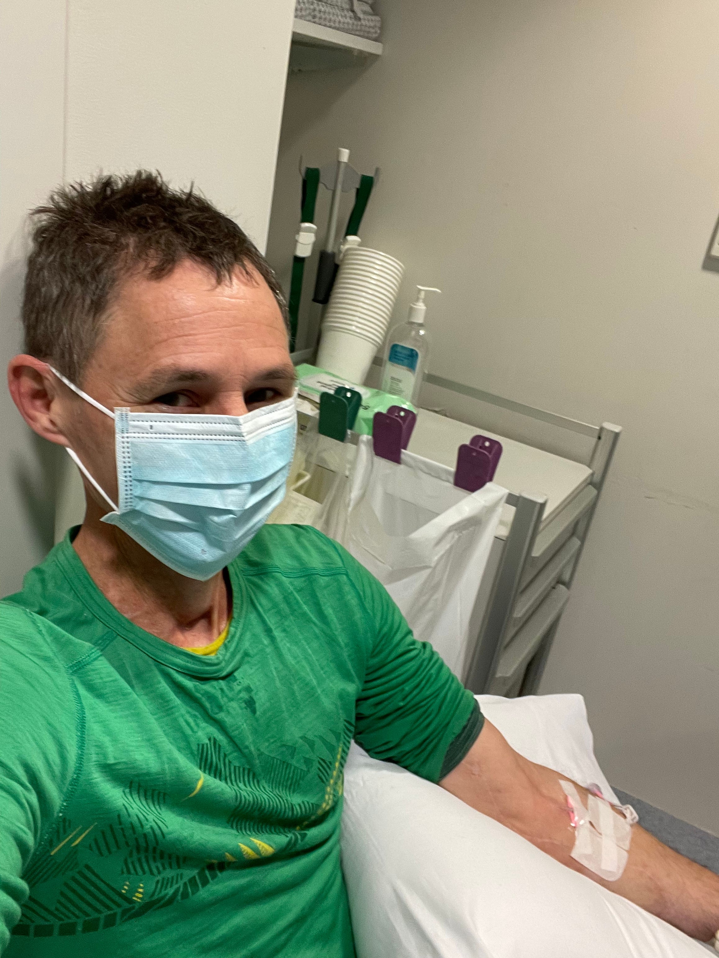After checking in to hospital I am PCR-tested, issued a theatre gown, theatre booties and some very breezy theatre undies. Once changed, I shuffle down the corridor to sit outside Theatre and wait to be called in.